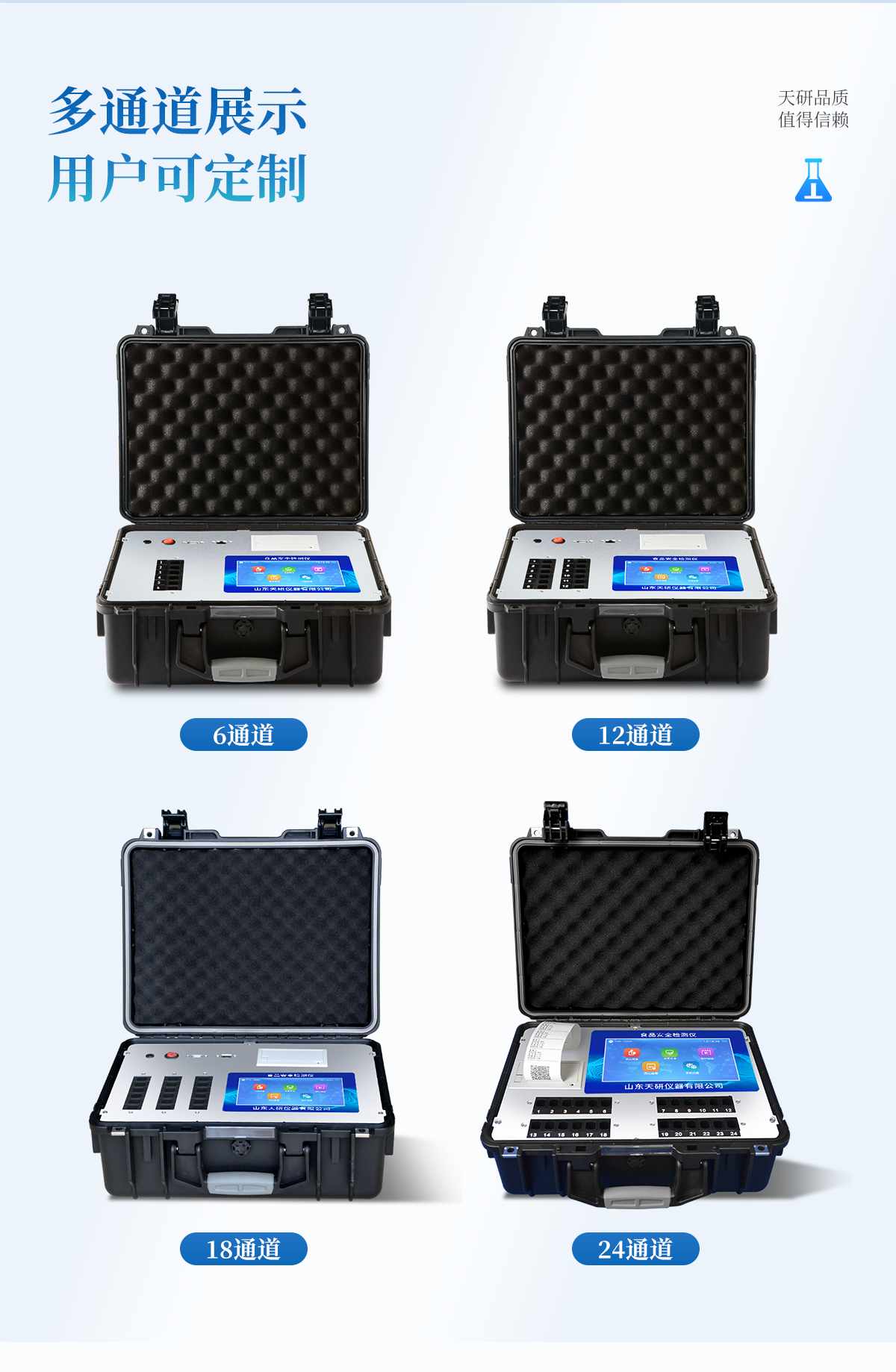 | 安卓智能操作系統(tǒng),采用更加**的UI交互界面,儀器具有wifi聯(lián)網(wǎng)上傳、4G聯(lián)網(wǎng)傳輸、GPRS無線遠(yuǎn)傳、網(wǎng)線連接功能,快速批量上傳數(shù)據(jù)。 | 智能化程度高,儀器具有自檢功能:具有開機(jī)自檢和調(diào)零功能,具有自動檢測重復(fù)性功能。 | 新一代高速熱敏打印機(jī),檢測完成可自動打印或批量打印檢測報(bào)告和二維碼。 | 儀器帶有監(jiān)管平臺,數(shù)據(jù)可局域網(wǎng)和互聯(lián)網(wǎng)數(shù)據(jù)上傳,檢測結(jié)果直接傳至食品安全監(jiān)管平臺。進(jìn)行區(qū)域食品安全監(jiān)管及大數(shù)據(jù)分析處理與數(shù)據(jù)統(tǒng)計(jì),檢測區(qū)域食品安全長短期動態(tài),達(dá)到食品安全問題預(yù)估、預(yù)警 | 一體化主機(jī),包含食品安全檢測模塊、多通道農(nóng)藥殘留檢測模塊、膠體金免疫層析檢測模塊。 | 一體化便攜式快檢設(shè)備,滿足現(xiàn)場及流動檢測使用需求,能夠在同一軟件下實(shí)現(xiàn)所有檢測項(xiàng)目的檢測,并可通過同一窗口直觀顯示檢測結(jié)果。 | 膠體金模塊檢測方式:軌道式自動傳輸掃描,檢測完成后自動退出檢測卡。 | CT線自動識別,無需手動調(diào)整。 | 內(nèi)置強(qiáng)大的數(shù)據(jù)庫,具有多品類多種類樣品菜單功能,可靈活選擇檢測樣品,不同的檢測通道可同時(shí)檢測不同的樣品項(xiàng)目。也可在儀器上直接編輯錄入樣品名稱、檢測指標(biāo)、送檢單位等信息并保存進(jìn)樣品數(shù)據(jù)庫。 | 產(chǎn)品內(nèi)置操作演示視頻,是您身邊的化驗(yàn)指導(dǎo)專家。 | 樣品處理簡單省力,整體操作快速、安全、便捷。 | 儀器具有自身保護(hù)功能,可設(shè)置用戶名及密碼,防止非工作人員操作等。 | 高靈敏度,高檢測精度,高重復(fù)性精度,掃描式高精度光學(xué)傳感器。 | 結(jié)果判定線可修改,對照值標(biāo)定值可保存,斷電不丟失數(shù)據(jù)。 | 兼容市場上所有的膠體金卡,使用耗材不受限制,極大增強(qiáng)用戶使用體驗(yàn)。 | 儀器具有重新校準(zhǔn)、鎖定、恢復(fù)出廠設(shè)置功能。 |