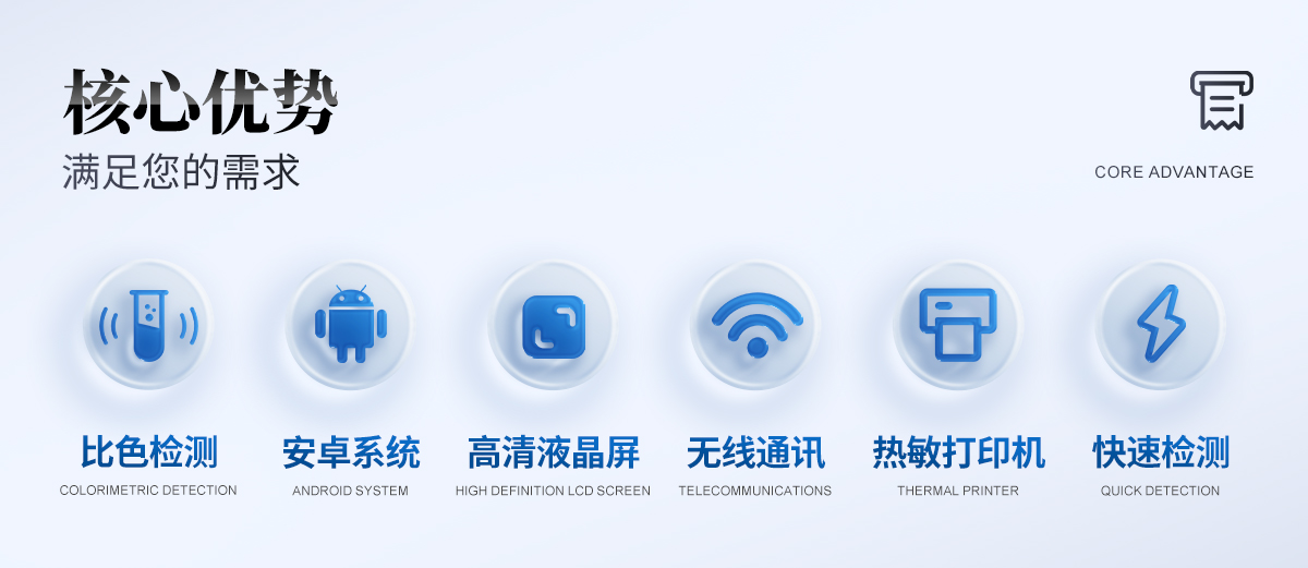 | 采用全新安卓7.1.1智能系統,人性化中文操作界面,運轉速度更快速,穩(wěn)定性更強。 | 8英寸液晶觸摸屏顯示,人性化中文操作界面,讀數直觀、簡單。 | 采用精密比色池設計,使用光源一致,可以解決由于光源誤差帶來的檢測結果誤差問題,檢測結果更加精準。 | 光源采用進口超高亮發(fā)光二極管,光源亮度可以自動調節(jié)與校準。 | 支持10mm、30mm、50mm皿比色和φ16mm管比色等比色方式,多元選擇,確保測量的準確性; | 具有無線通訊功能,支持WIFI、RJ45、手機熱點聯網傳輸,檢測數據亦可通過U盤導出; | 多功能樣品管理,可對樣品進行中英文命名,方便樣品記錄和數據存儲; | 儀器可永久存儲800萬組數據,為方便大量數據查找,可通過時間檢索,并隨意選擇分析; | 支持HDMI輸出,方便用戶培訓、講解、及大屏展示。 | 儀器帶有監(jiān)管云平臺,數據可通過局域網和互聯網上傳,亦可對接上傳至環(huán)境監(jiān)管部門平臺。 | 內置熱敏行式打印機,打印紙上的內容可自由選擇(包括二維碼打?。?/td> | 交流220V,可選配6ah大容量充電鋰電池,方便戶外流動測試; | 后期產品固件可升級。 |