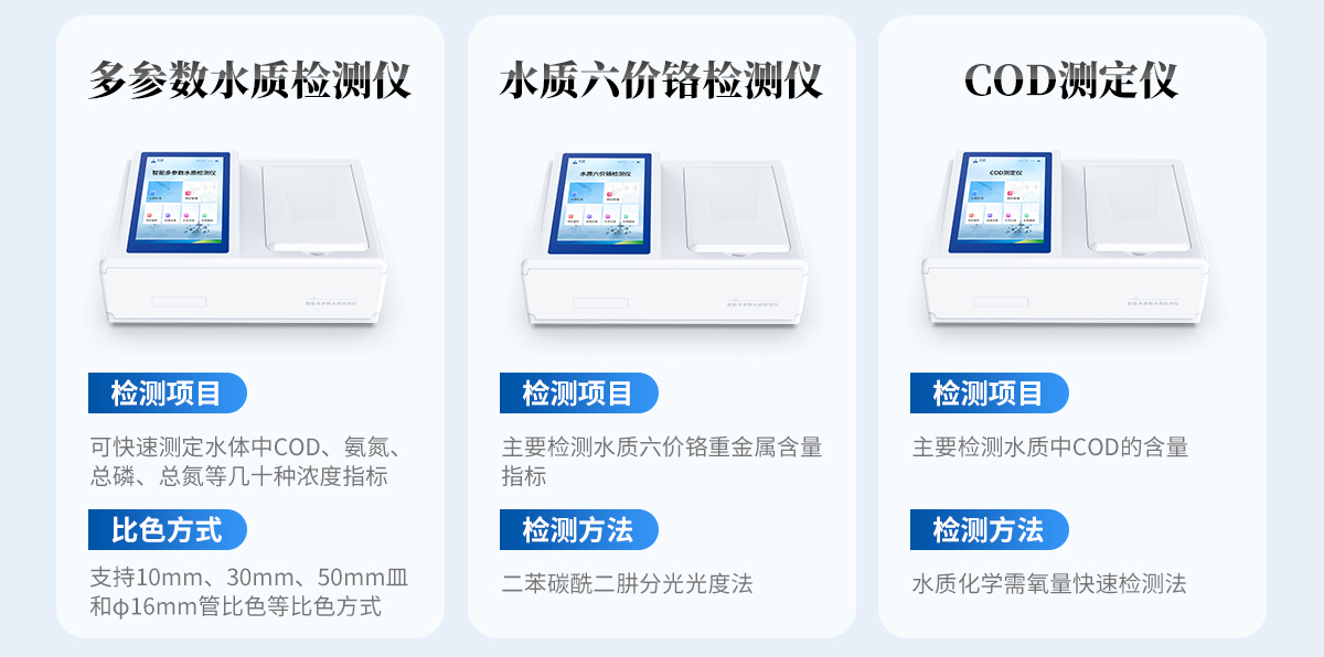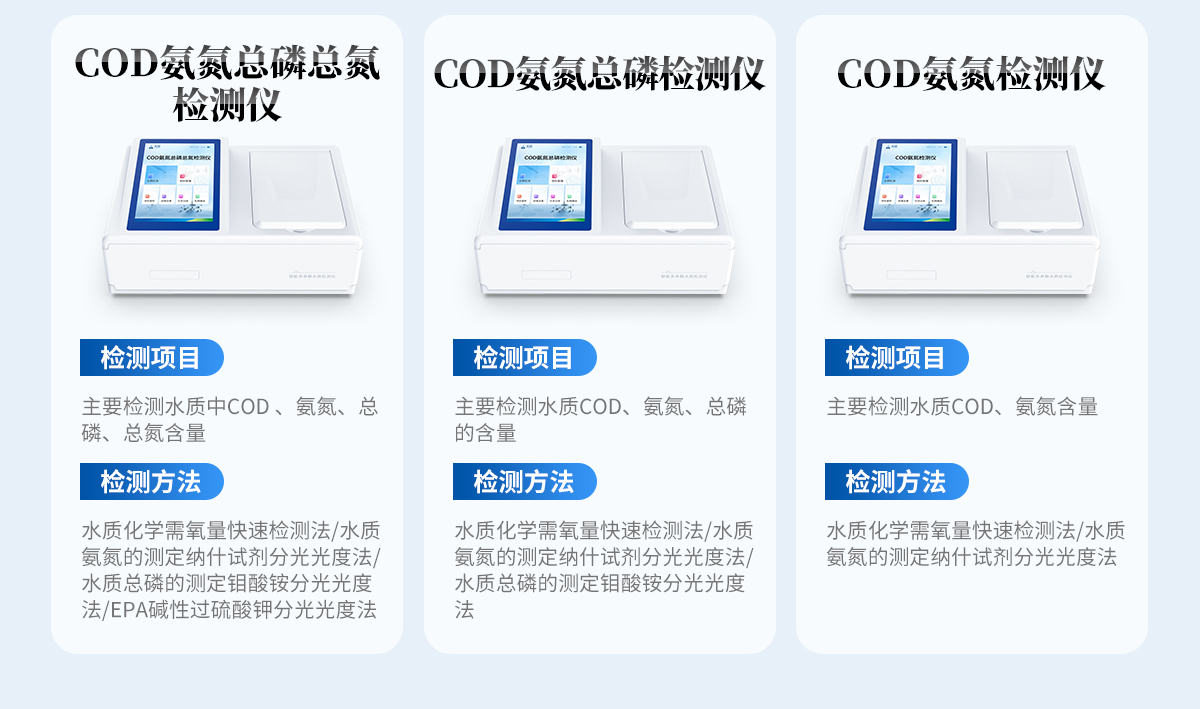 | 波長配置:420nm、470nm、520nm、560nm、620nm、700nm; | 示值誤差:≤±5%; | 重復性:≤2% | 光化學穩(wěn)定性:20min內數值漂移≤0.002A(10萬小時壽命); | 1、COD 依據標準:HJ/T399-2007水質化學需氧量快速檢測法 檢測量程:0-15000mg/L(分段) 檢測下限:0.7mg/L | 2、氨氮 依據標準:HJ535-2009水質氨氮的測定納什試劑分光光度法 檢測量程:0-250mg/L(分段) 檢測量程:0-250mg/L(分段) | 3、總磷 依據標準:GB11893-89水質總磷的測定鉬酸銨分光光度法 檢測量程:0-33mg/L(分段) 檢測下限:0.02mg/L | 4、總氮 依據標準:EPA堿性過硫酸鉀分光光度法 檢測量程:0-150(分段) 檢測下限:0.5mg/L |