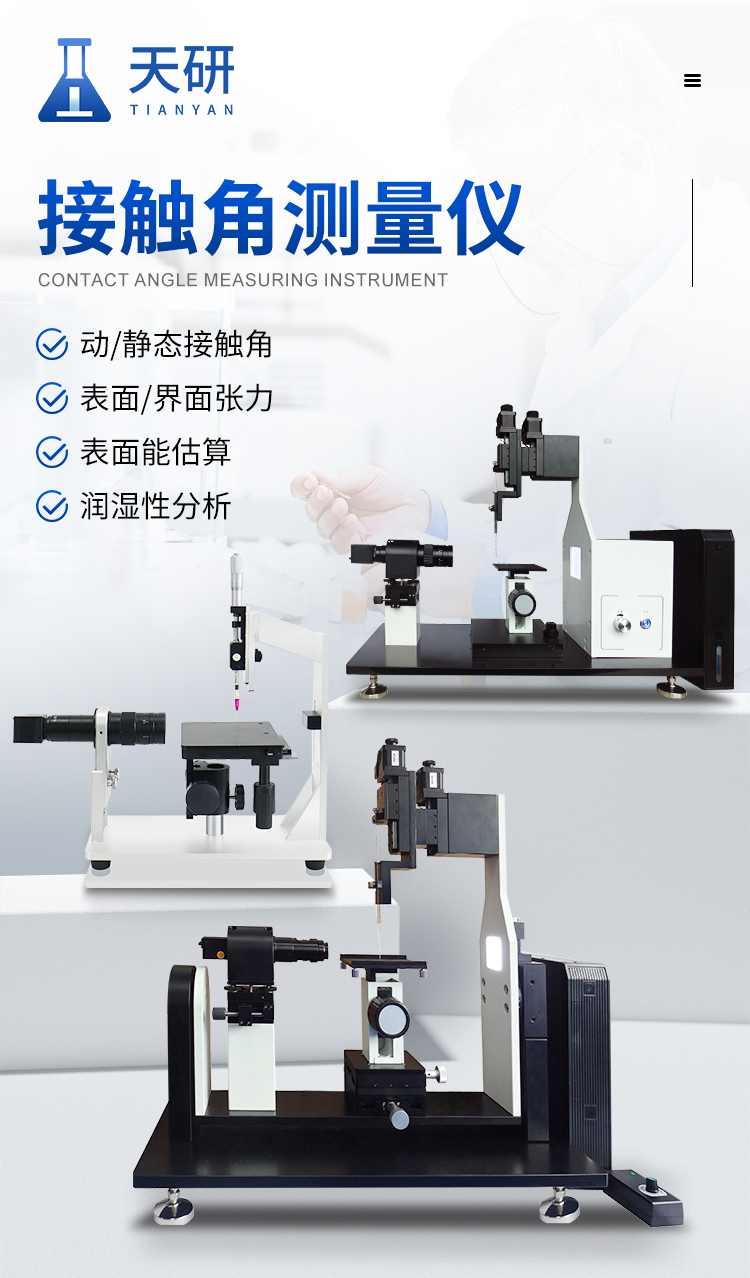 本機(jī)用于測(cè)試和分析液體在固體表面的接觸角、液體的表面張力、固體的表面能等。實(shí)現(xiàn)對(duì)固體表面的親/疏水性分析、潤(rùn)濕性分析、潔凈度檢測(cè)、處理工藝效果評(píng)估,以及液體被競(jìng)爭(zhēng)、吸附、吸收和鋪展等過程分析。廣泛應(yīng)用于化工、醫(yī)藥、食品、電子、印染、噴涂、軍工和科教等眾多領(lǐng)域的測(cè)試與研究。