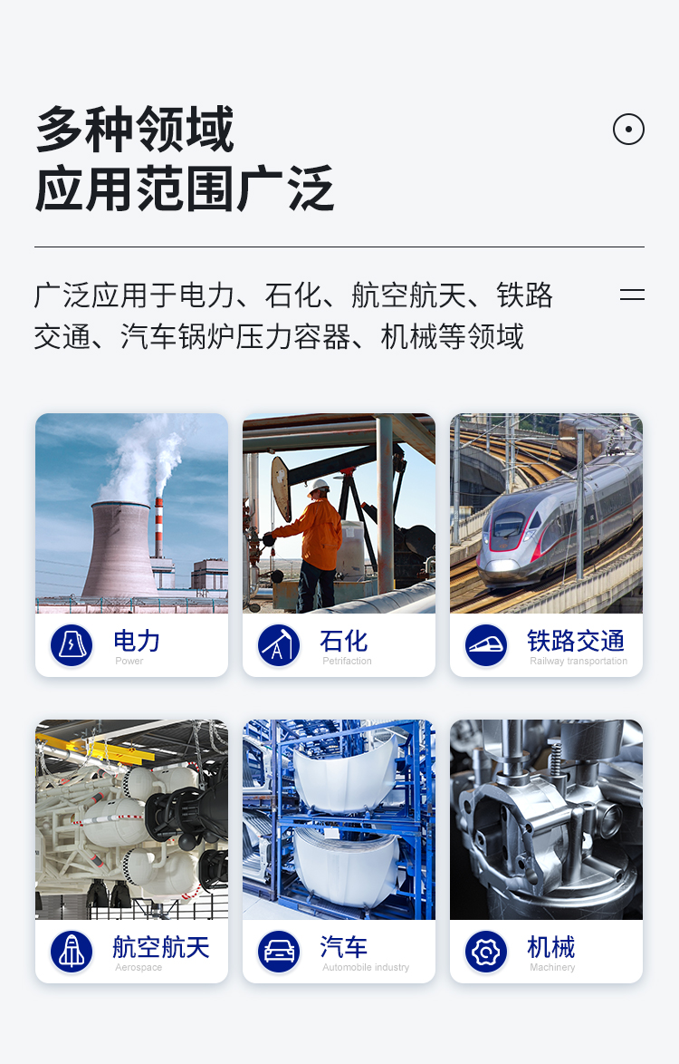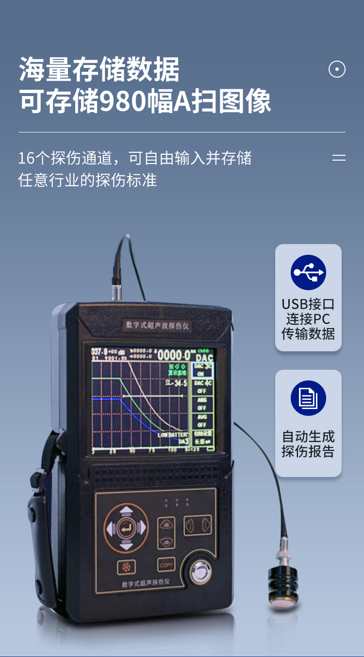 數(shù)字超聲波探傷儀能夠便捷、準確地進行工件內(nèi)部多種缺陷如裂紋、焊縫、氣孔、砂眼、夾雜、折疊等的檢測、定位、評估及診斷,廣泛應(yīng)用于電力、石化、鍋爐壓力容器、鋼結(jié)構(gòu)、航空航天、鐵路交通、汽車、機械等領(lǐng)域。它是無損檢測行業(yè)的儀器。
