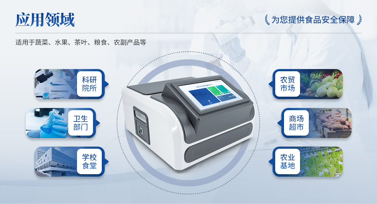 全自動(dòng)農(nóng)藥殘留檢測(cè)儀是依據(jù)國(guó)家標(biāo)準(zhǔn)方法(GB/T5009.199-2003),采用酶抑制率比色法對(duì)水果、蔬菜等農(nóng)產(chǎn)品中有機(jī)磷和氨基甲酸酯類農(nóng)藥含量進(jìn)行快速準(zhǔn)確的檢測(cè)。該設(shè)備廣泛應(yīng)用于蔬菜批發(fā)市場(chǎng)、超市、商場(chǎng)、食藥監(jiān)等部門(mén)的蔬菜和水果中的農(nóng)藥殘留檢測(cè)。