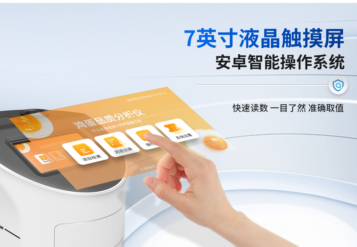 | 3. 可檢測(cè)任意位置蛋白高度,任意位置蛋殼厚度。 | 4. 觸摸屏操作,操作更方便,顯示更清晰。 |