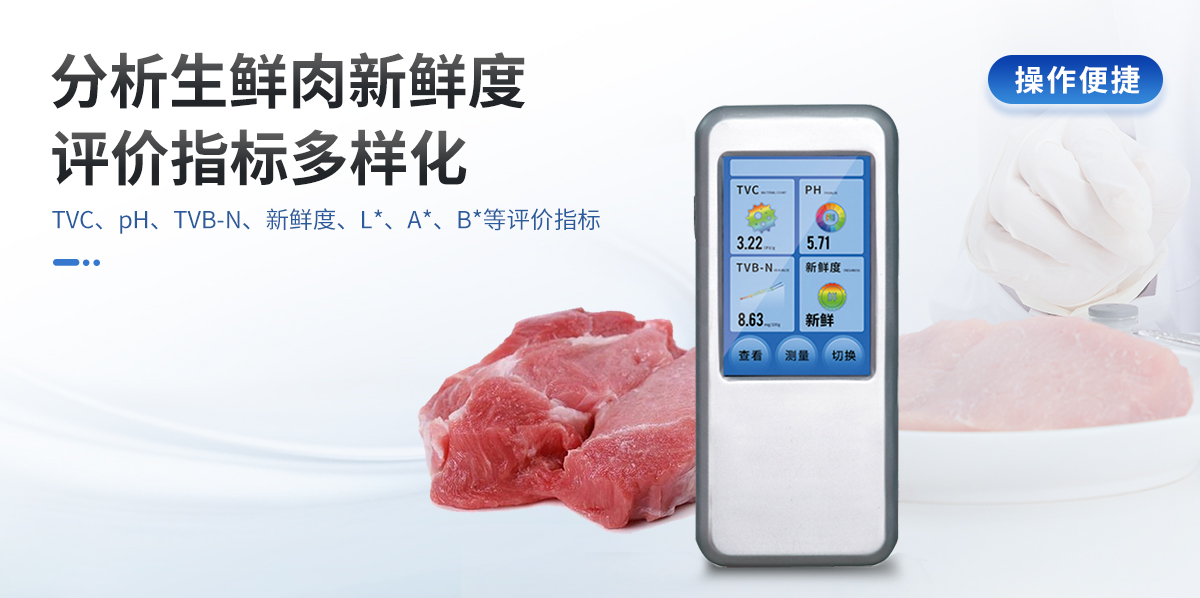 聯(lián)合中國(guó)農(nóng)業(yè)大學(xué)彭彥昆教授團(tuán)隊(duì)研發(fā)的掌上式生鮮肉新鮮度分析儀,可用于檢測(cè)生鮮肉的TVC、pH、TVB-N、新鮮度、L*、A*、B*等評(píng)價(jià)指標(biāo)。Palmarter具有體積小、便 于攜帶、性價(jià)比高等特點(diǎn),其應(yīng)用場(chǎng)景包括但不限于肉儲(chǔ)運(yùn)企業(yè)、肉品品質(zhì)監(jiān)管部門、飯店、超市、菜場(chǎng)、家庭等。