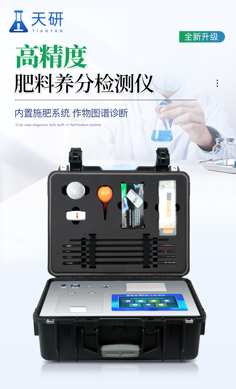 | 可檢測化肥、有機(jī)肥(含葉面肥、水溶肥、噴施肥等)、植株中的速效氮、速效磷、有效鉀、全氮、全磷、全鉀、有機(jī)質(zhì)、酸堿度,鈣、鎂、硫、鐵、錳、硼、鋅、銅、氯、硅、鉬等各種中微量元素以及鉛、鉻、鎘、汞、砷、鎳、鋁、氟、鈦、硒等各種重金屬含量。 | 安卓智能操作系統(tǒng),采用更加**和人性化操作,儀器標(biāo)配wifi聯(lián)網(wǎng)上傳、4G聯(lián)網(wǎng)傳輸、GPRS無線遠(yuǎn)傳,快速上傳數(shù)據(jù)。 | 內(nèi)置作物專家施肥系統(tǒng),可對百余種全國農(nóng)業(yè)、果樹、經(jīng)濟(jì)作物的目標(biāo)產(chǎn)量計(jì)算推薦施肥量,依據(jù)施肥配方科學(xué)指導(dǎo)農(nóng)業(yè)生產(chǎn)。 | 采用精密旋轉(zhuǎn)比色池設(shè)計(jì),光源一致性更加**保證檢測精度。一次性可快速檢測12個樣品,極大提升檢測效率,降低檢測成本。 | 內(nèi)置植物營養(yǎng)診斷標(biāo)準(zhǔn)圖譜,根據(jù)各農(nóng)作物營養(yǎng)缺失的圖片,進(jìn)行葉面對比,診斷豐缺。 | 采用高精度濾光片技術(shù)自主專利分析方法(專利號:ZL 2018 2 1777724.7),比色槽部分采用標(biāo)準(zhǔn)1cm比色皿,無機(jī)械位移及磨損,光路測試定位**,保證檢測結(jié)果優(yōu)于國標(biāo)要求。 | 儀器配有數(shù)據(jù)接收平臺,無需數(shù)據(jù)線,數(shù)據(jù)可直接局域網(wǎng)和互聯(lián)網(wǎng)無線上傳,方便進(jìn)行數(shù)據(jù)管理和數(shù)據(jù)長期分析。 | 儀器內(nèi)置新一代高速熱敏打印機(jī),檢測完成可自動打印檢測報(bào)告和二維碼。 | 高靈敏7寸電容觸摸屏,高清晰高交互顯示,大程度降低傳統(tǒng)儀器的繁瑣操作和失誤。 | 每個通道均配置四波長冷光源,所有光源實(shí)現(xiàn)恒流穩(wěn)壓,保證波長穩(wěn)定。 硅半導(dǎo)體作為信號接收系統(tǒng),壽命長達(dá)10萬小時級別。重現(xiàn)性好,準(zhǔn)確度高。 | 高強(qiáng)度PVC工程塑料手提箱設(shè)計(jì),堅(jiān)固耐用,便于攜帶,供電方式為交直流兩用,可野外流動測試配套成品藥劑。 |