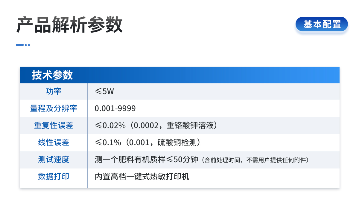 | 可檢測(cè)化肥、有機(jī)肥(含葉面肥、水溶肥、噴施肥等)、植株中的有機(jī)質(zhì)、腐殖酸等。 | 安卓智能操作系統(tǒng),采用更加**和人性化操作,儀器標(biāo)配wifi聯(lián)網(wǎng)上傳、4G聯(lián)網(wǎng)傳輸、GPRS無(wú)線(xiàn)遠(yuǎn)傳,快速上傳數(shù)據(jù)。 | 采用精密旋轉(zhuǎn)比色池設(shè)計(jì),光源一致性更加**保證檢測(cè)精度。一次性可快速檢測(cè)12個(gè)樣品,極大提升檢測(cè)效率,降低檢測(cè)成本。 | 儀器配有數(shù)據(jù)接收平臺(tái),無(wú)需數(shù)據(jù)線(xiàn),數(shù)據(jù)可直接局域網(wǎng)和互聯(lián)網(wǎng)無(wú)線(xiàn)上傳,方便進(jìn)行數(shù)據(jù)管理和數(shù)據(jù)長(zhǎng)期分析。 | 儀器內(nèi)置新一代高速熱敏打印機(jī),檢測(cè)完成可自動(dòng)打印檢測(cè)報(bào)告和二維碼。 | 高靈敏7寸電容觸摸屏,高清晰高交互顯示,大程度降低傳統(tǒng)儀器的繁瑣操作和失誤。 | 每個(gè)通道均配置四波長(zhǎng)冷光源,所有光源實(shí)現(xiàn)恒流穩(wěn)壓,保證波長(zhǎng)穩(wěn)定。 硅半導(dǎo)體作為信號(hào)接收系統(tǒng),壽命長(zhǎng)達(dá)10萬(wàn)小時(shí)級(jí)別。重現(xiàn)性好,準(zhǔn)確度高。 |