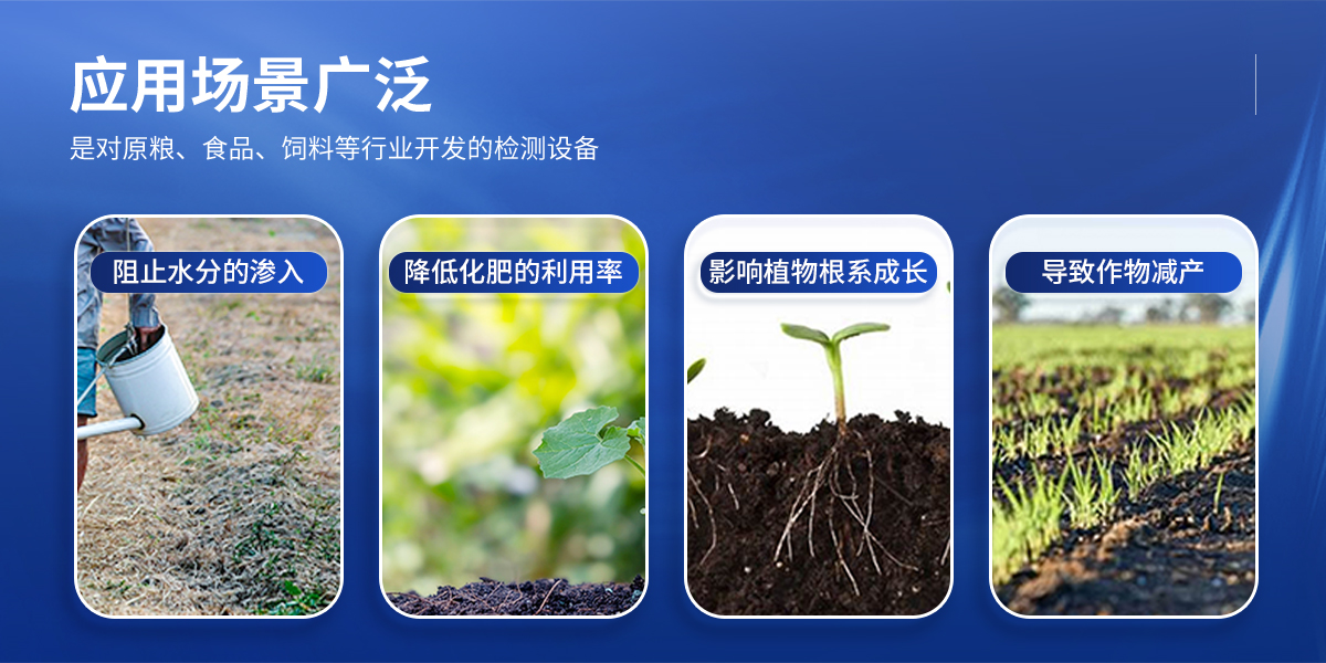 土壤緊實(shí)度由土壤抗剪力、壓縮力和摩擦力等構(gòu)成。是土壤強(qiáng)度的一個(gè)合成指標(biāo)。金屬柱塞或探針壓入土壤時(shí)分動(dòng)載和靜載兩種方法,不同方法的測(cè)定值不同,但有聯(lián)系。柱塞的形狀有錐體、平頭、圓球及楔子等,這些對(duì)測(cè)定值也有影響。對(duì)同一種方法的測(cè)定值,主要決定于土壤質(zhì)地、容重和含水量。其中含水量的影響最大。土壤緊實(shí)度可預(yù)測(cè)土壤承載量、耕性和根系伸展的阻力。土壤緊實(shí)度的大小可影響作物根系的穿孔和生長,是一個(gè)重要的土壤物理特性指標(biāo),用于評(píng)價(jià)土壤耕性。緊實(shí)的土壤可阻止水分的入滲,降低化肥的利用率,影響植物根系生長,導(dǎo)致作物減產(chǎn)。