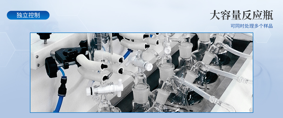 | 1.大容量反應(yīng)瓶,可同時(shí)處理多個(gè)樣品。 | 2.恒溫水浴加熱,具有快速自動(dòng)恒溫控制系統(tǒng),加熱溫度可以手動(dòng)設(shè)定。 | 3.每個(gè)樣品的氮?dú)饬髁开?dú)立控制調(diào)節(jié)或關(guān)閉,針閥氣體流量計(jì)準(zhǔn)確控制和顯示氣體總消耗量。 | 4.由升降位置固定旋鈕調(diào)節(jié)樣品架及配氣系統(tǒng),旋轉(zhuǎn)樣品架的升降,正面安裝樣品,操作方便。 | 5.鹽酸口、氣體進(jìn)氣口、出口三口一體且相互區(qū)分開(kāi),不干擾操作。 |