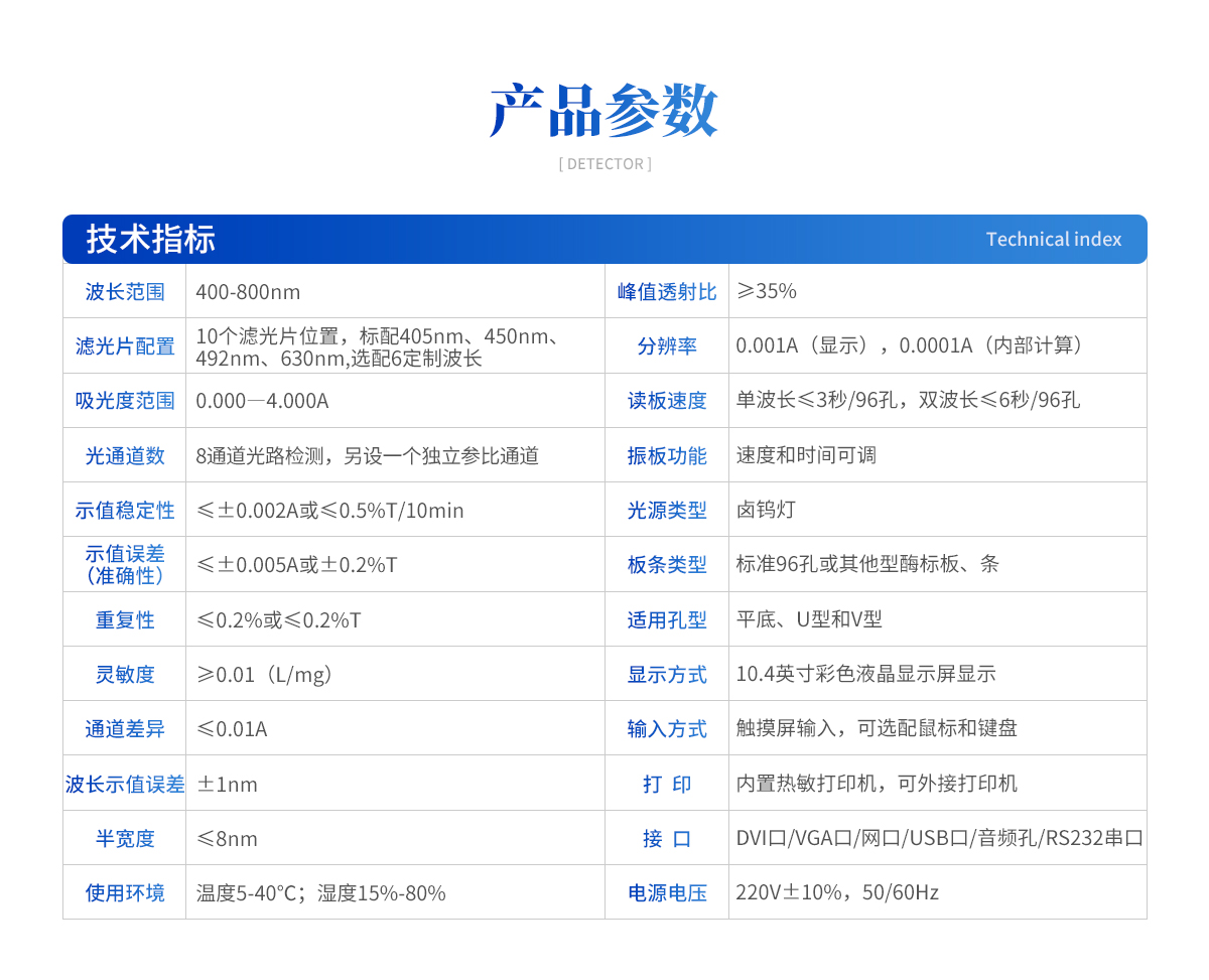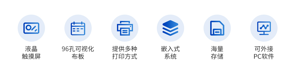 產(chǎn)品特點(diǎn):1. 10.4英寸彩色液晶觸摸屏輸入,大屏顯示,操作快捷。2. 全屏顯示96孔可視化布板操作界面。3. 自動儲存標(biāo)準(zhǔn)曲線,用戶可對標(biāo)準(zhǔn)曲線進(jìn)行修正。4. 內(nèi)置嵌入式系統(tǒng),無需外接電腦即可操作、存儲、打印。5. 單波長和雙波長測試模式下均可進(jìn)行自動調(diào)零。6. 可選配外接PC軟件,網(wǎng)絡(luò)化支持,迎合數(shù)字化發(fā)展方向,可定制上