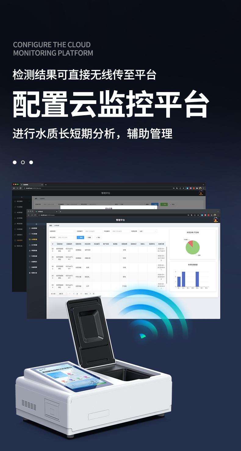 | 1、采用全新安卓7.1.1智能操作系統(tǒng),人性化中文操作界面,運(yùn)轉(zhuǎn)速度更快速,穩(wěn)定性更強(qiáng)。 | 2、10.1英寸液晶觸摸屏顯示,人性化中文操作界面,讀數(shù)直觀、簡(jiǎn)單。 | 3、采用精密比色池設(shè)計(jì),使用光源一致,可以解決由于光源誤差帶來(lái)的檢測(cè)結(jié)果誤差問(wèn)題,檢測(cè)結(jié)果更加精準(zhǔn)。 | 4、光源采用進(jìn)口超高亮發(fā)光二極管,光源亮度可以自動(dòng)調(diào)節(jié)與校準(zhǔn)。 | 5、支持10mm、30mm、50mm皿比色和φ16mm管比色等比色方式,多元選擇,確保測(cè)量的準(zhǔn)確性; | 6、具有無(wú)線通訊功能,支持WIFI、RJ45、手機(jī)熱點(diǎn)聯(lián)網(wǎng)傳輸,檢測(cè)數(shù)據(jù)亦可通過(guò)U盤導(dǎo)出; | 7、多功能樣品管理,可對(duì)樣品進(jìn)行中英文命名,方便樣品記錄和數(shù)據(jù)存儲(chǔ); | 8、儀器可永久存儲(chǔ)800萬(wàn)組數(shù)據(jù),為方便大量數(shù)據(jù)查找,可通過(guò)時(shí)間檢索,并隨意選擇分析; | 9、儀器帶有監(jiān)管云平臺(tái),數(shù)據(jù)可通過(guò)局域網(wǎng)和互聯(lián)網(wǎng)上傳,亦可對(duì)接上傳至環(huán)境監(jiān)管部門平臺(tái)。 | 10、內(nèi)置熱敏行式打印機(jī),打印紙上的內(nèi)容可自由選擇(包括二維碼打印); | 12、內(nèi)置教學(xué)演示視頻,用戶可一邊看儀器內(nèi)操作視頻,一邊進(jìn)行實(shí)驗(yàn)操作,更易上手。 | 13、后期產(chǎn)品固件可升級(jí)。 |