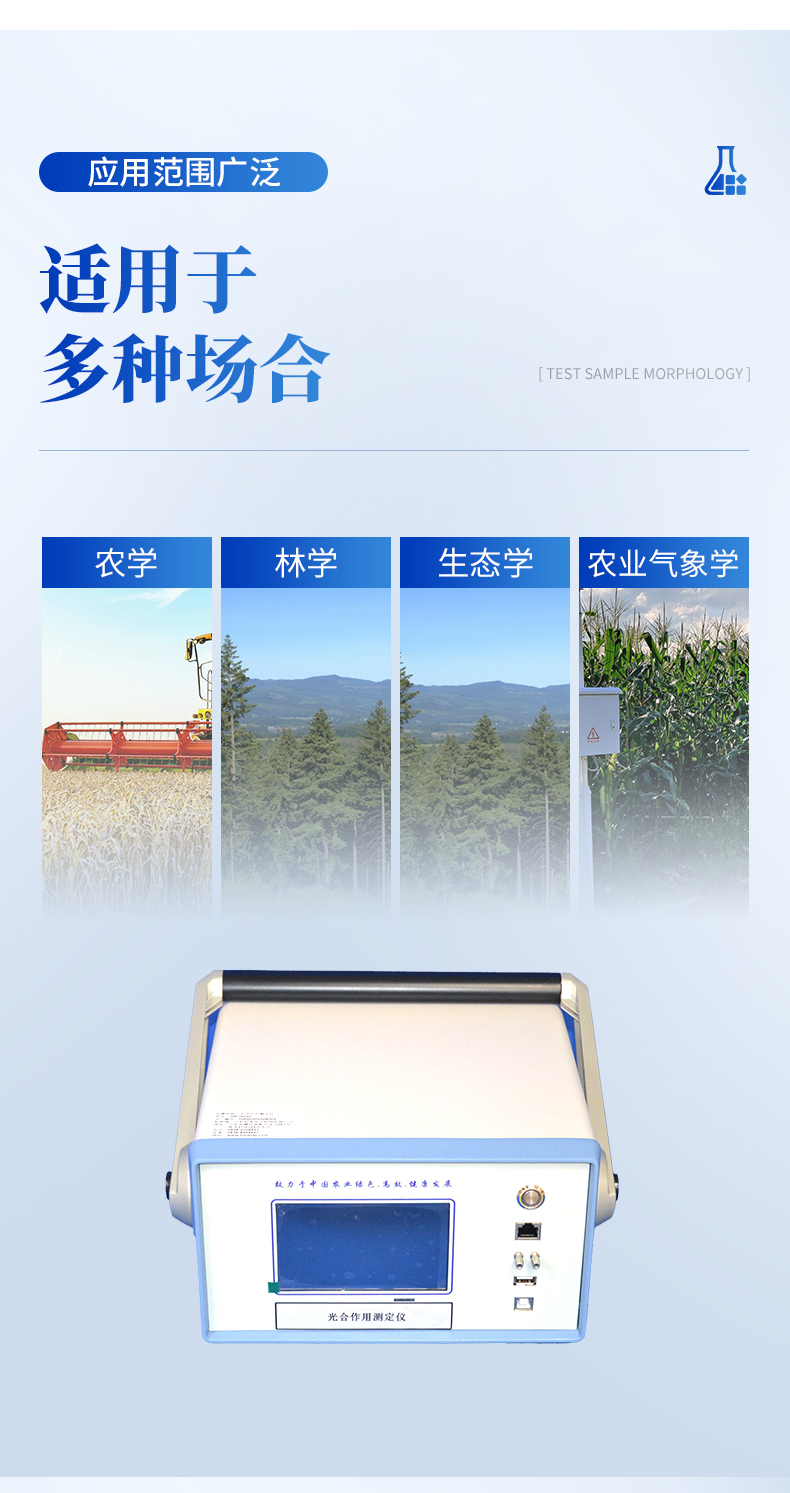 光合作用測定儀采用閉路測量方法可以測定氣體CO2濃度、空氣溫濕度,植物葉片溫度,光強,氣體流量等要素,并計算出植物的光合速率、蒸騰速率、細(xì)胞間CO2濃度、氣孔導(dǎo)度、水分利用率等光合作用指標(biāo),在生物、農(nóng)學(xué)、園藝、林業(yè)、昆蟲、微生物、動物等許多專業(yè)的實驗課程中有廣泛的利用前景。