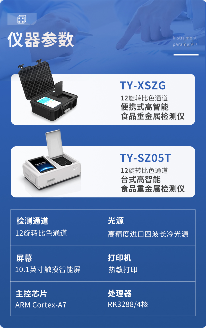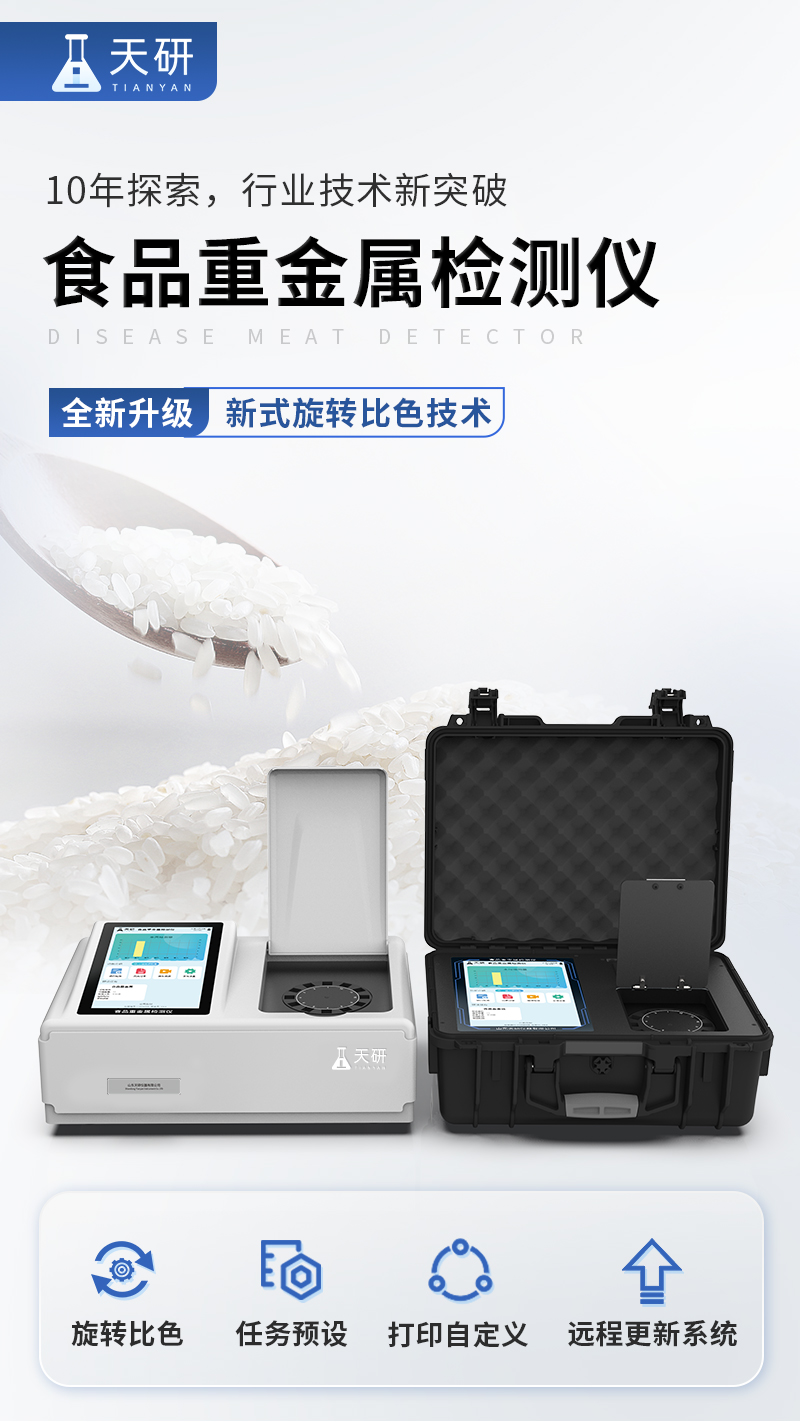 山東天研儀器有限公司生產(chǎn)的重金屬檢測儀為集成化食品安全快速檢測分析設(shè)備,采用臺式一體化設(shè)計,重金屬檢測儀可廣泛應(yīng)用于大米、糧谷、果品、蔬菜、藥材、水產(chǎn)品中重金屬鉛、鎘、六價鉻、汞、砷、鐵、鎳、鋁等項(xiàng)目進(jìn)行快速定量檢測,檢測項(xiàng)目可根據(jù)客戶的需求定制,儀器預(yù)留其他項(xiàng)目檢測程序和端口,根據(jù)日后需求可進(jìn)行遠(yuǎn)程升級