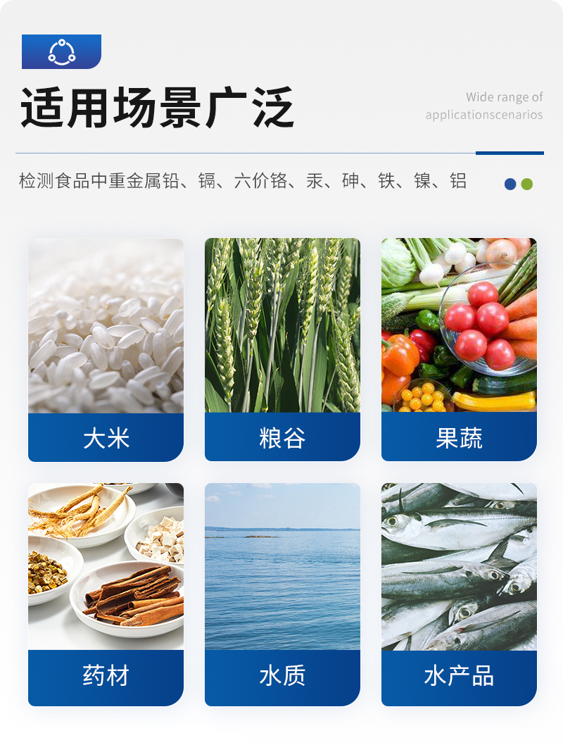 儀器用途: 山東天研儀器有限公司生產(chǎn)的重金屬檢測儀為集成化食品安全快速檢測分析設(shè)備,采用臺式一體化設(shè)計,重金屬檢測儀可廣泛應(yīng)用于大米、糧谷、果品、蔬菜、藥材、水產(chǎn)品中重金屬鉛、鎘、六價鉻、汞、砷、鐵、鎳、鋁等項(xiàng)目進(jìn)行快速定量檢測,檢測項(xiàng)目可根據(jù)客戶的需求定制,儀器預(yù)留其他項(xiàng)目檢測程序和