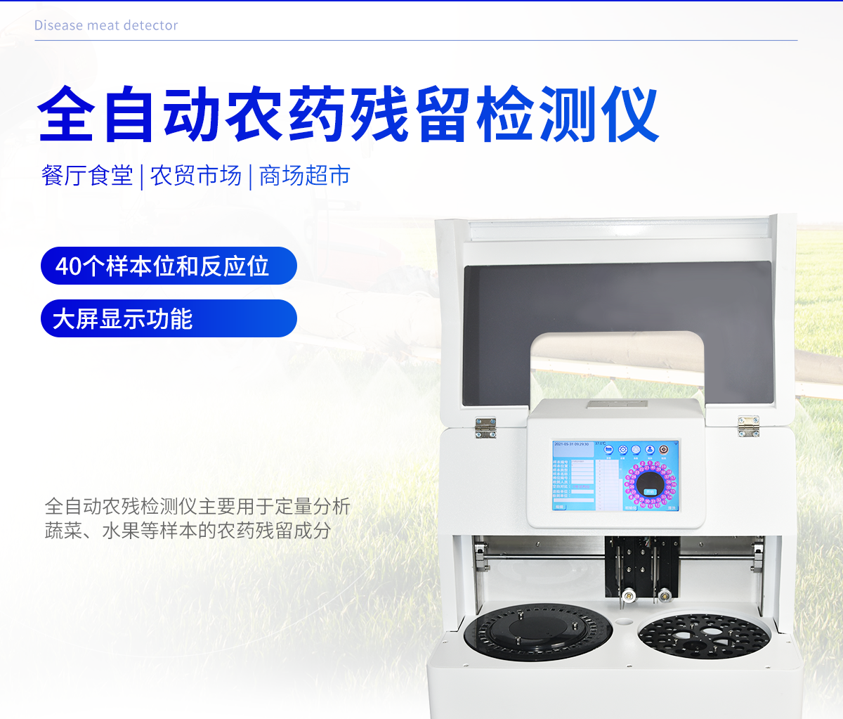 廣泛應(yīng)用于主要用于蔬菜、水果、茶葉、糧食、農(nóng)副產(chǎn)品等食品中有機(jī)磷和氨基甲酸酯類農(nóng)藥殘留的快速檢測;此外還可用于果蔬茶生產(chǎn)基地和農(nóng)貿(mào)批發(fā)銷售市場現(xiàn)場檢測,餐館、學(xué)校、食堂、家庭果蔬加工前的安全速測等,為廣大人民的生活安全提供保障。