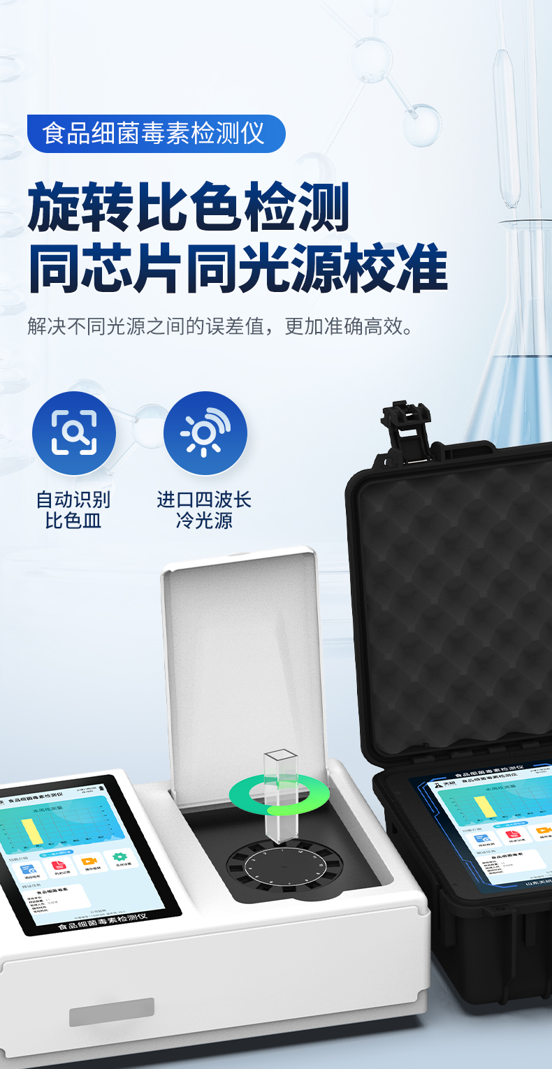 產(chǎn)品用途: 山東天研儀器有限公司生產(chǎn)的真菌毒素檢測(cè)儀應(yīng)用競爭抑制免疫層析的技術(shù)原理,通過就是通過待檢測(cè)物與抗體結(jié)合的方法,分析待檢樣品中真菌毒素殘留。可快速檢測(cè)糧食、飼料、谷物、食用油、調(diào)味品中如玉米、大米、小麥、大麥、糙米、麩皮、稻谷、豆粕、米糠、飼料中的黃曲霉毒素B1、M1、總量,玉