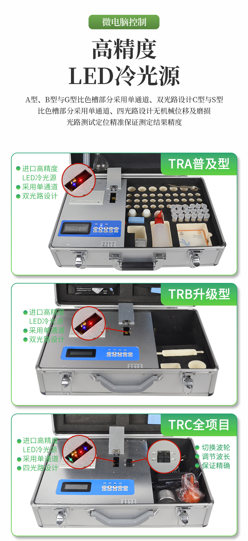 | 全國(guó)《機(jī)箱/藥劑一體式鋁合金機(jī)箱》設(shè)計(jì),便于攜帶、堅(jiān)固耐用,配套成品藥劑。 | 微電腦控制,數(shù)字化線路、程序化設(shè)計(jì),液晶顯示,交直流兩用,測(cè)試數(shù)據(jù)可存儲(chǔ)查詢,可野外流動(dòng)測(cè)試,最大程度降低操作者的失誤和勞動(dòng)強(qiáng)度。 | 分辨率:0.001,觸摸式按鍵,內(nèi)置新一代熱敏打印機(jī),可打印測(cè)試結(jié)果。 | 肥料養(yǎng)分專用快速檢測(cè)儀可檢測(cè)化肥、有機(jī)肥中的速效氮、速效磷、有效鉀、全氮、全磷、全鉀、有機(jī)質(zhì)含量等。 | 采用高亮度 LED 燈作為光源, 硅半導(dǎo)體作為信號(hào)接收系統(tǒng), 壽命長(zhǎng)達(dá)10萬(wàn)小時(shí)級(jí)別。光源穩(wěn)定,一致性好。 | 比色槽部分采用單通道、雙光路設(shè)計(jì),無(wú)機(jī)械位移及磨損,光路測(cè)試定位**,保證測(cè)定結(jié)果精度。 | 采用自主發(fā)明分析方法,保證檢測(cè)結(jié)果絕對(duì)達(dá)到國(guó)標(biāo)要求。 | 肥料打印結(jié)果為百分含量,測(cè)試誤差小于1%。 |