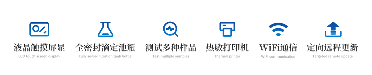 | 1.采用了原裝進(jìn)口7.0英寸800*480像素真彩TFT-LCD大屏幕彩色顯示器,鍵盤采用人體感應(yīng)式觸摸屏,全中文操作界面,軟件界面顯示直觀大方,內(nèi)容豐富,操作內(nèi)容方便自如,漢字提示,靈活、具有檢測(cè)靈敏閾高、操作簡(jiǎn)單、測(cè)試速度快、重復(fù)性好等特點(diǎn). | 2.儀器具有試驗(yàn)結(jié)果存儲(chǔ)、打印、計(jì)算功能;樣品測(cè)定過程由儀器自動(dòng)控制,攪拌、測(cè)定60秒左右自動(dòng)完成,直接顯示測(cè)定結(jié)果;全密封滴定池瓶,避免試劑與人接觸,也避免環(huán)境濕度的影響;儀器中文液晶顯示,并具有自動(dòng)計(jì)算和打印功能,能打印出百分含量、樣品編號(hào)、試驗(yàn)員、實(shí)驗(yàn)日期等內(nèi)容;儀器準(zhǔn)確度為:①水含量小于10微克水時(shí),測(cè)量值誤差小于2ug水;②水含量在10微克-1000微克水時(shí),測(cè)量誤差≤2ug水;③水含量在1000微克以上時(shí),測(cè)量值誤差≤0.2%(不含進(jìn)樣誤差); | 3.核心主機(jī)采用TI 公司AM3354處理器,Cortex-A8內(nèi)核,1GHz主頻;操作系統(tǒng)采用Windows Embedded Compact 7實(shí)時(shí)工控系統(tǒng)。徹底擯棄了無核無操裸奔的單片機(jī),真正實(shí)現(xiàn)了儀器操控的現(xiàn)代化,使儀器步入新的智能時(shí)代。 |