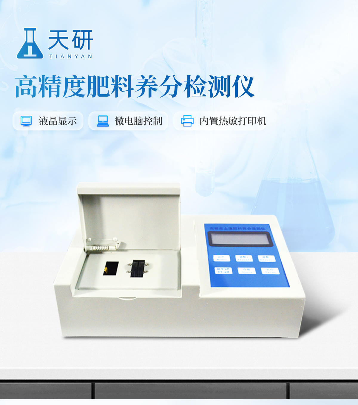 | 升級(jí)款,噴塑鋼板外殼設(shè)計(jì),堅(jiān)固耐用,配套成套附件及成品藥劑。 | 微電腦控制,數(shù)字化線路、程序化設(shè)計(jì),液晶顯示,交直流兩用,可野外流動(dòng)測(cè)試。 | 分辨率:0.001,觸摸式按鍵,內(nèi)置新一代熱敏打印機(jī),可打印測(cè)試結(jié)果。 | 肥料養(yǎng)分專用檢測(cè)儀可檢測(cè)化肥、有機(jī)肥(含葉面肥、水溶肥、噴施肥等)中的速效氮、速效磷、有效鉀、全氮、全磷、全鉀、有機(jī)質(zhì)、酸堿度,鈣、鎂、硫、鐵、錳、硼、鋅、銅、氯、硅等各種中微量元素以及鉛、鉻、鎘、汞、砷等各種重金屬含量。 | 采用高亮LED燈光源、雙撥輪濾光式處理技術(shù),保證光源波長穩(wěn)定, 硅半導(dǎo)體作為信號(hào)接收系統(tǒng),壽命長達(dá)10萬小時(shí)級(jí)別。光源穩(wěn)定,重現(xiàn)性好,準(zhǔn)確度高。 | 比色槽部分采用單通道設(shè)計(jì),無機(jī)械位移及磨損,光路測(cè)試定位**,保證測(cè)定結(jié)果精度。 | 采用自主分析方法(號(hào):ZL 2018 2 1777724.7),保證檢測(cè)結(jié)果絕對(duì)達(dá)到國標(biāo)要求。 | 內(nèi)置熱敏打印機(jī),肥料打印結(jié)果為百分含量,測(cè)試誤差小于0.5%。 |
