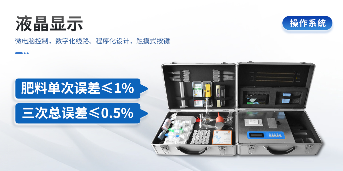 | 肥料養(yǎng)分專(zhuān)用檢測(cè)儀功能全:測(cè)試項(xiàng)目國(guó)內(nèi)外最全(各類(lèi)藥劑均可選購(gòu))。 | 配套齊全,該儀器集藥、器、儀為一體,攜帶方便,相當(dāng)于一個(gè)小型實(shí)驗(yàn)室,用戶(hù)只需提供蒸餾水即可在要求時(shí)間內(nèi)完成全部操作。適于農(nóng)業(yè)服務(wù)部門(mén)或農(nóng)資經(jīng)銷(xiāo)商鑒別肥料真假、肥料廠(chǎng)商肥料生產(chǎn)中控、農(nóng)資質(zhì)檢部門(mén)進(jìn)行農(nóng)資打假,規(guī)范農(nóng)資市場(chǎng)。 | 性能可靠:工作穩(wěn)定性?xún)?yōu)于國(guó)家標(biāo)準(zhǔn)JJG179-90指標(biāo)的10倍以上,重復(fù)性達(dá)到光柵型分光光度計(jì)指標(biāo)水平。 |