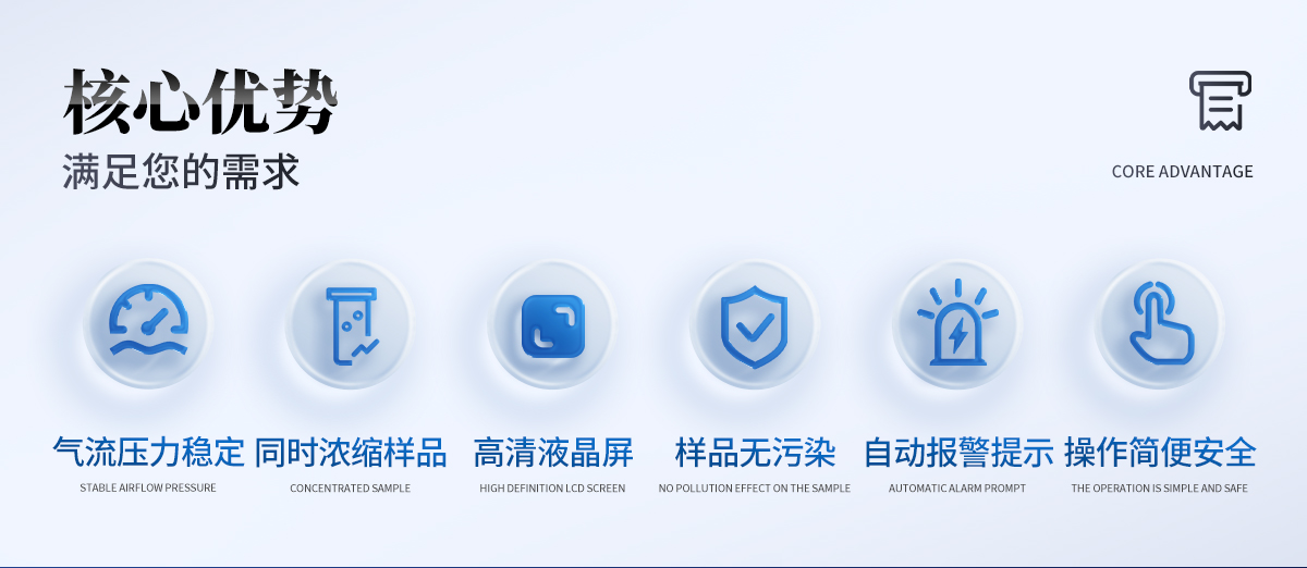 | 1、全自動(dòng)氮?dú)鉂饪s儀能同時(shí)濃縮單個(gè)或多個(gè)樣品,毋需人工值守:全自動(dòng)氮?dú)鉂饪s儀采用多個(gè)光學(xué)傳感器監(jiān)控每個(gè)樣品的濃縮過程,當(dāng)蒸發(fā)濃縮至預(yù)設(shè)體積時(shí),系統(tǒng)自動(dòng)停止相應(yīng)通道的氮?dú)獯祾?,并?bào)警提示。整個(gè)濃縮過程無需人工看管; | 2、特別的氣流吹掃軌跡及緩沖設(shè)計(jì):可加速溶劑蒸發(fā)濃縮、防止溶劑噴濺損失; | 3、工作參數(shù)任意設(shè)置、控制和實(shí)時(shí)顯示:主要工作參數(shù):氮吹壓力、水浴溫度和工作時(shí)間,均可按需設(shè)置。 | 4、氮吹氣流壓力穩(wěn)定、恒定:儀器自帶自動(dòng)調(diào)壓裝置,氣流壓力可自動(dòng)控制并保持恒定,不受工作通道(樣品)突然開啟、關(guān)閉或數(shù)量的影響; | 5、樣品無污染影響:所有氣路及相關(guān)器件均采用經(jīng)過驗(yàn)證的零污材料,避免樣品受到來自儀器的污染; | 6、操作簡便、安全:靈活的工作參數(shù)設(shè)定、方便的樣品置入/取出過程,易學(xué)易用;全封閉設(shè)計(jì)以及儀器自帶的強(qiáng)力排風(fēng)系統(tǒng)配置,可避免水浴蒸汽和有機(jī)揮發(fā)組份對儀器及操作人員的影響。 |