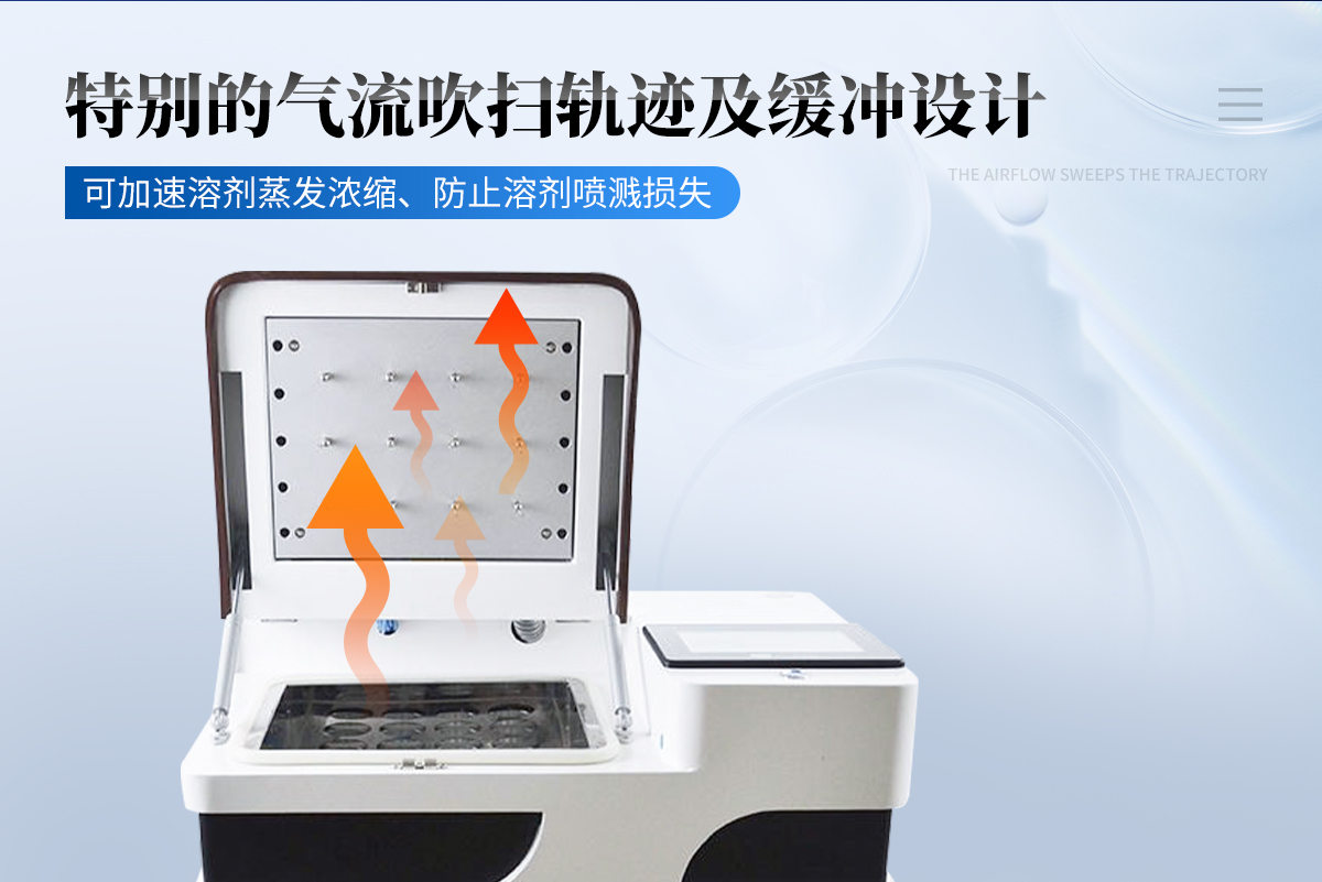 該設(shè)備采用獨(dú)特的濃縮方式大幅提高濃縮速率。同時(shí),設(shè)備利用自帶抽氣風(fēng)扇將蒸發(fā)之廢氣由排氣管路定向排出,使得原本必須置于通風(fēng)廚中的氮吹濃縮裝置可安全的安裝于一般實(shí)驗(yàn)平臺(tái)上。不僅移動(dòng)容易,節(jié)約實(shí)驗(yàn)室成本,而且減輕了有毒有害溶劑對操作人員的傷害。是實(shí)驗(yàn)室樣品前處理裝置。