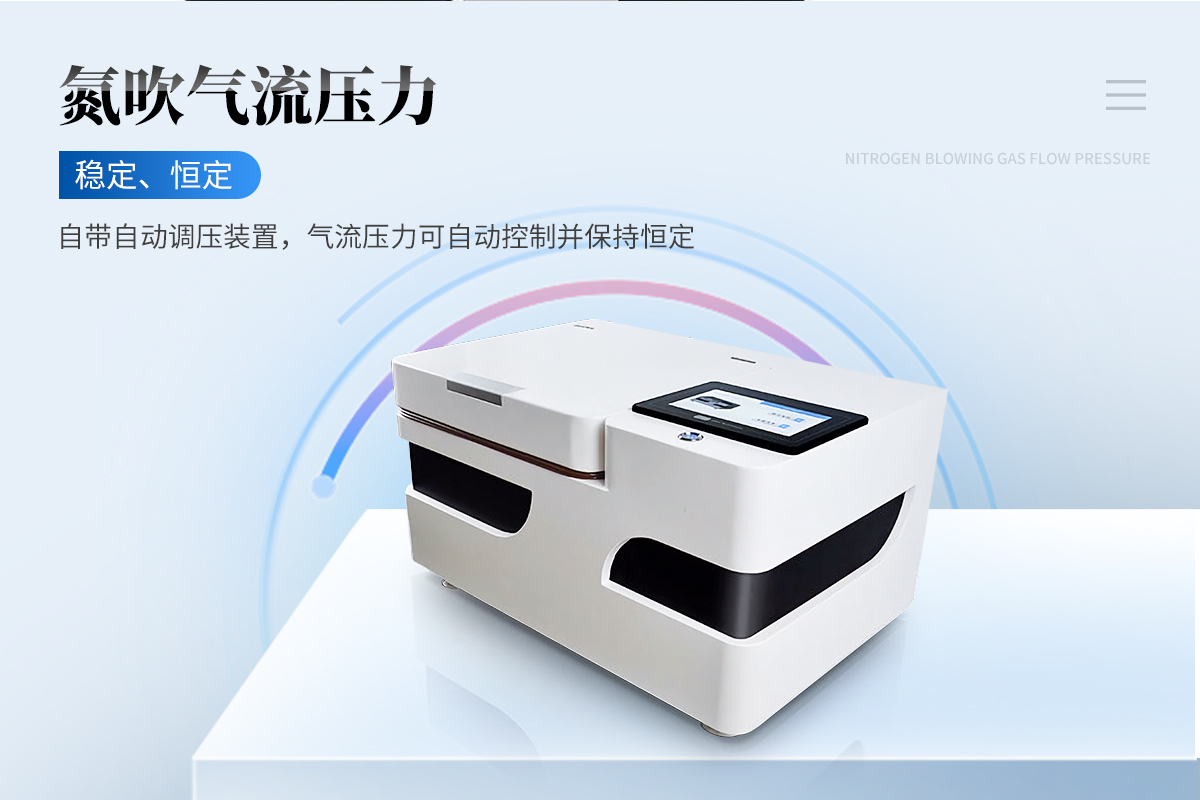 全自動(dòng)氮?dú)鉂饪s儀在大量的分析工作尤其是在環(huán)境污染物、食品安全分析領(lǐng)域中,為了獲得痕量的目標(biāo)組分,都需對備檢樣品進(jìn)行預(yù)處理,其過程主要包括有樣品提?。ㄝ腿。饪s、凈化及再濃縮等基本步驟,其中如何快速無損的濃縮也是關(guān)鍵的一環(huán)。完成濃縮過程的常用裝置包括旋轉(zhuǎn)蒸發(fā)儀、K-D濃縮器和氮?dú)獯祾撸ê喎Q氮吹儀)等,其中以氮吹濃縮簡單,它不需要特別的裝置設(shè)計(jì),當(dāng)樣品數(shù)量不多或溶劑量較小時(shí),采用該法方便。當(dāng)同時(shí)需要濃縮大批量樣品且溶劑量多時(shí),以上各濃縮裝置就顯得力不從心,濃縮過程顯得費(fèi)時(shí)、費(fèi)力(需要看管,以防吹干)且開放式的氮吹裝置對操作人員身體健康不利。