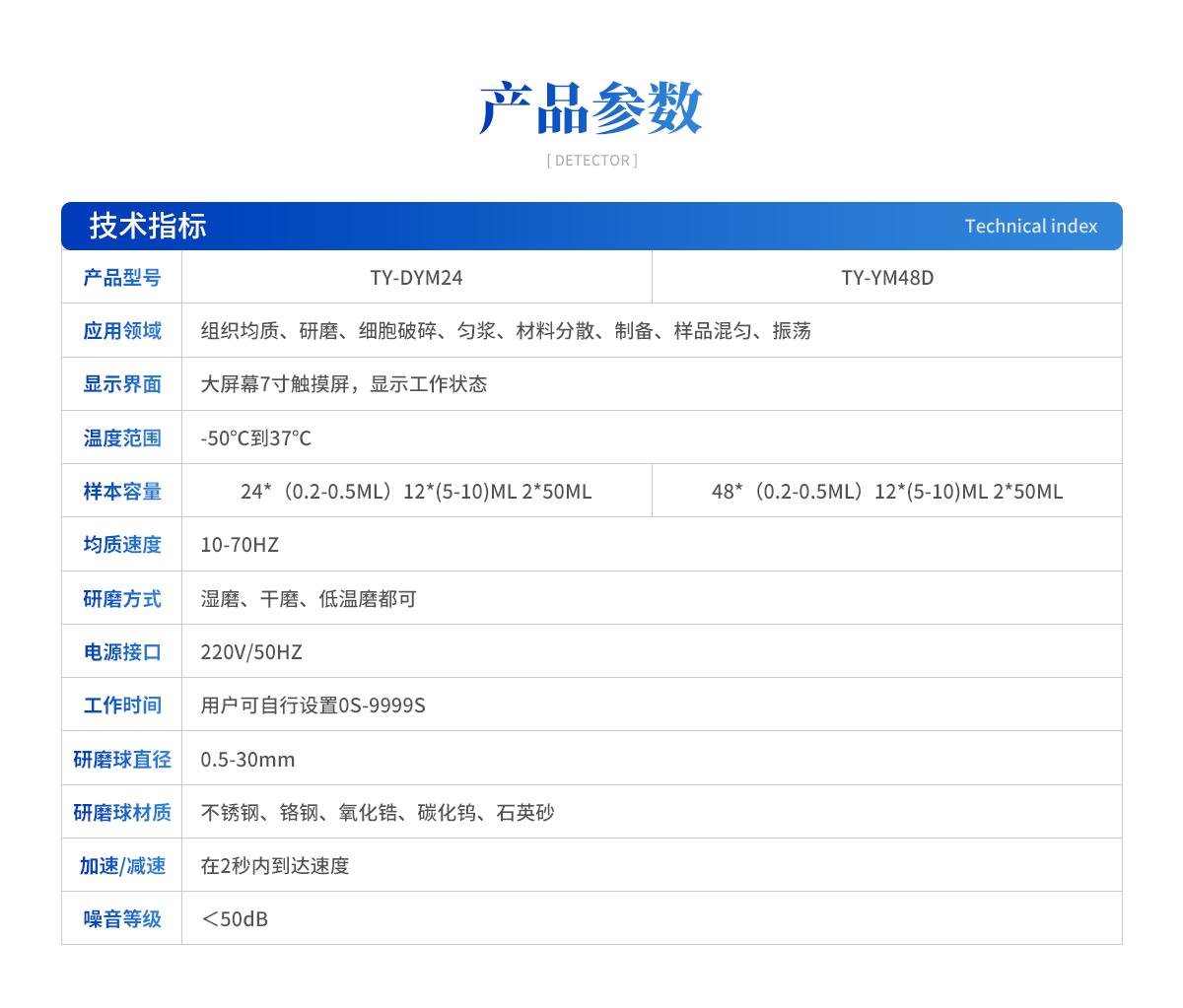 | 應(yīng)用領(lǐng)域:組織均質(zhì)、研磨、細(xì)胞破碎、勻漿、材料分散、制備、樣品混勻、振蕩 液晶顯示:大屏幕7寸觸摸屏,顯示工作狀態(tài) 溫度范圍:-50℃到37℃ 處理樣本量:24*(0.2-0.5ML)12*(5-10)ML 2*50ML 均質(zhì)速度:10-70HZ 電源:兩相220V /50HZ 工作時(shí)間:0秒-9999s,用戶可自行設(shè)定 研磨球直徑:0.5-30mm 研磨球材料:不銹鋼、鉻鋼、氧化鋯、碳化鎢、石英砂 加速:在2秒內(nèi)達(dá)到最大速度 減速:在2秒內(nèi)達(dá)到**速度 噪音等級(jí):小于50db |
