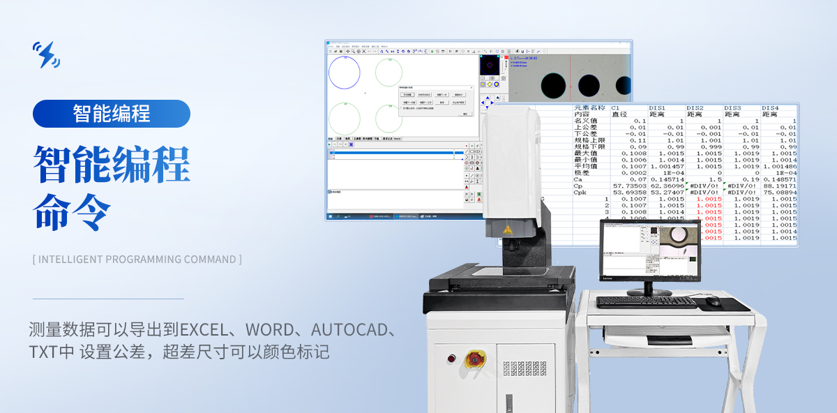 測量數(shù)據(jù)可以導出到EXCEL、Word、AutoCAD、TXT中。設置公差,超差尺寸可以顏色標記,也可以輸出語音報警。