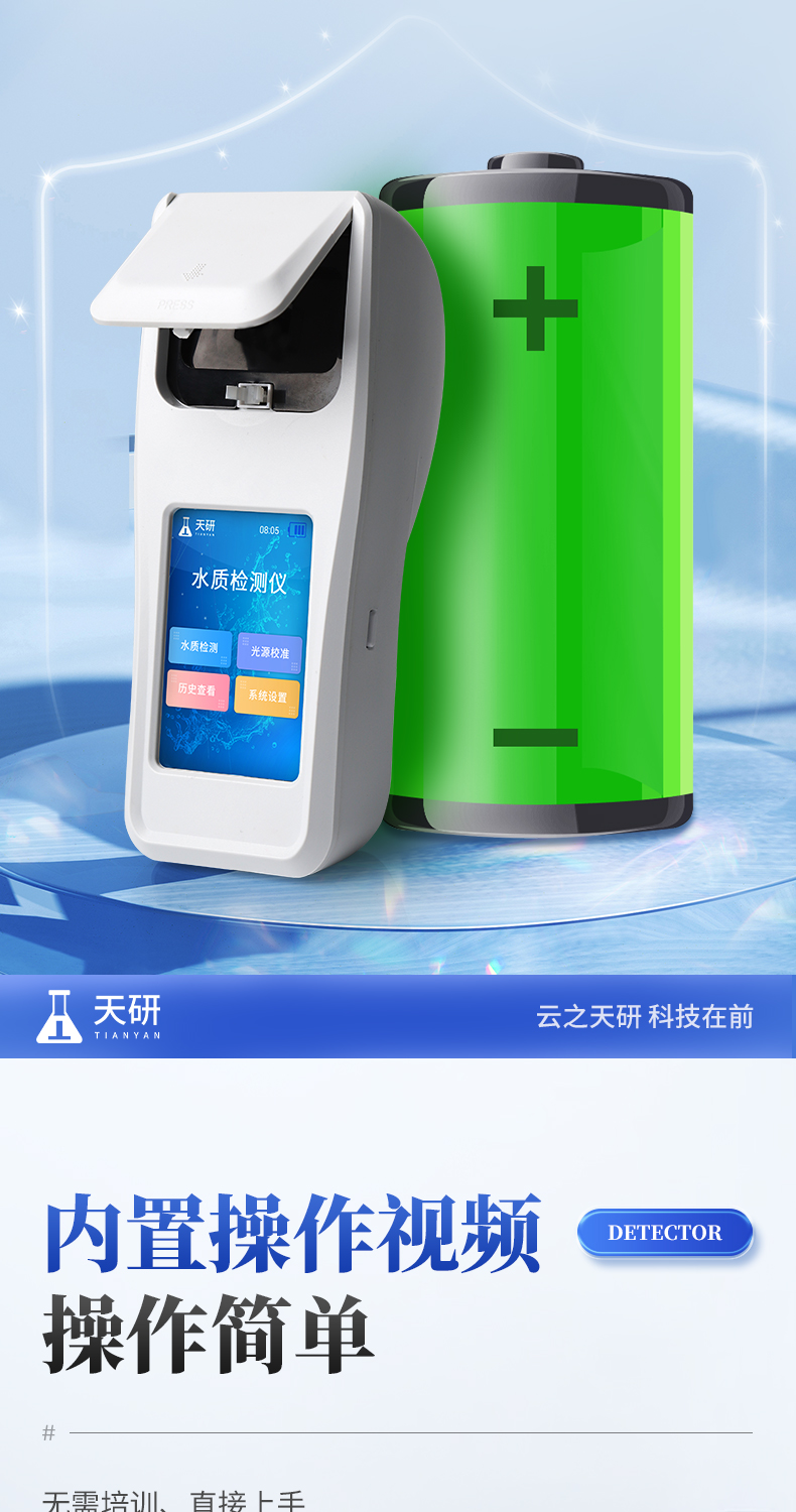 | 1、安卓智能系統(tǒng),操作更佳簡便快捷; | 2、配置云監(jiān)控平臺(tái),檢測結(jié)果可直接無線傳至平臺(tái),進(jìn)行水質(zhì)長短期分析,輔助管理; | 3、內(nèi)置操作流程、操作簡單、無需培訓(xùn)、直接上手; | 4、檢測速度更快,現(xiàn)場讀取數(shù)據(jù); | 5、便攜式體積小,重量輕,方便戶外檢測; | 6、外形小巧美觀,工作穩(wěn)定免維護(hù),具有較好的性價(jià)比; | 7、采用進(jìn)口冷光源,光學(xué)性能穩(wěn)定,壽命長達(dá)10萬小時(shí); | 8、交直流兩用,內(nèi)置充電鋰電池,環(huán)保耐用可支持連續(xù)室內(nèi)外工作。 |