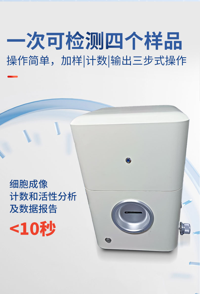 細(xì)胞計(jì)數(shù)儀簡述: 細(xì)胞計(jì)數(shù)儀通過細(xì)胞成像技術(shù)結(jié)合傳統(tǒng)血球計(jì)數(shù)原理,經(jīng)計(jì)數(shù)軟件對細(xì)胞分布圖像進(jìn)行自動(dòng)計(jì)數(shù)、細(xì)胞聚團(tuán)率分析、細(xì)胞活力分析、細(xì)胞大小分析,并繪制細(xì)胞大小柱狀圖等。該儀器檢測快速、操作簡單、結(jié)果準(zhǔn)確,可滿足多種細(xì)胞檢測場景需求。 主要特點(diǎn):