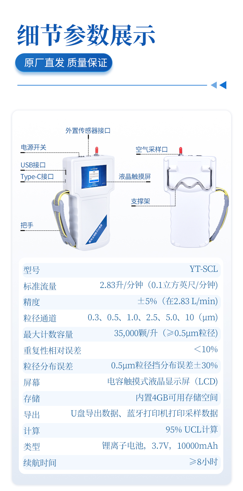 5、數(shù)據(jù)處理 存儲:自動記錄保存采樣數(shù)據(jù),內(nèi)置4GB可用存儲空間 導出:支持U盤導出數(shù)據(jù)、藍牙打印機打印采樣數(shù)據(jù) 計算:95% UCL計算,可直接顯示粒子濃度(顆、顆/m3、顆/ft3) |