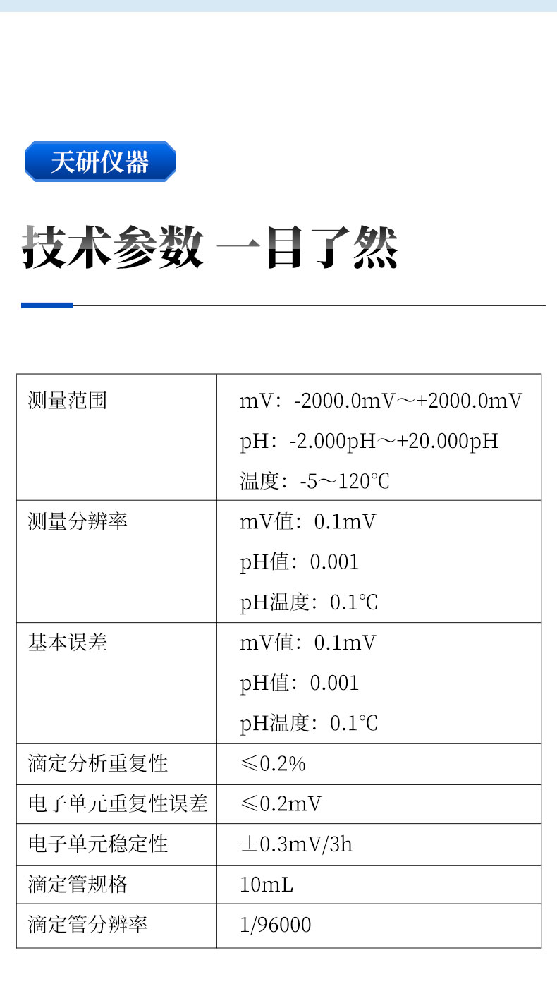 | 滴定管分辨率 | 1/96000 |