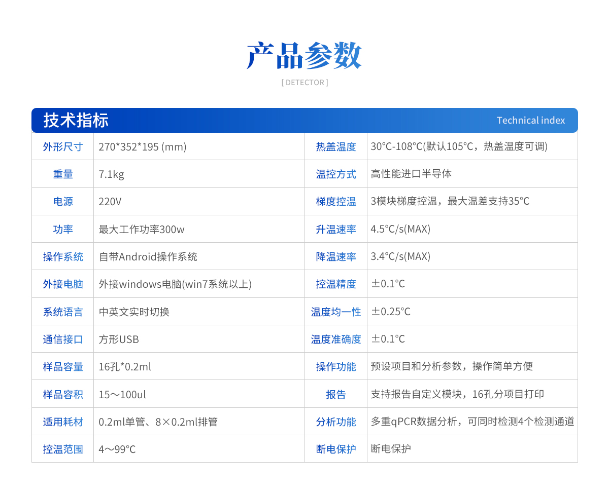 | 樣品容量 | 16孔*0.2ml |